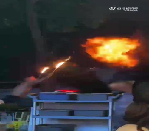 Wink吃饭偶遇街头表演:这个火男是得跳一下才能放技能吗